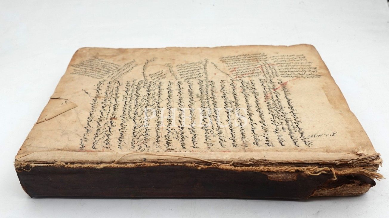 Ön cilt kapağı yoktur. Eser baştan eksiktir. Sayfalarında su lekesi mevcuttur.