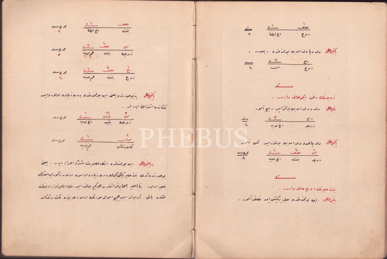 El yazması feraiz [İslam miras hukuku] notlarının yer aldığı defter, 110 sayfa, 18x24 cm