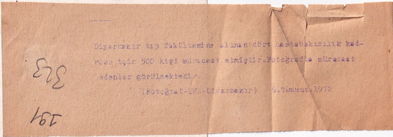 Diyarbakır Tıp Fakültesi, 4 kişilik hastabakıcı kadrosu için 500 kişinin müracaat etmesi, 1972, 9x12 cm