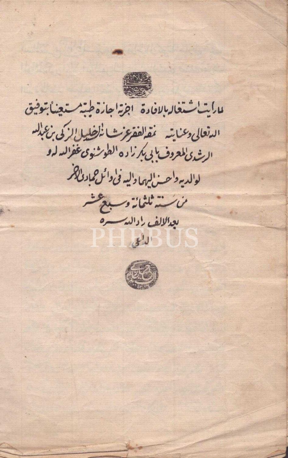 Hocazâde Seyyid Halil ez-Zekî´nin Babaşlızâde Necmeddin Hasan Hüseyin Hilmi´ye verdiği ilmiye icazetnamesi, 1317, 8 sayfa, 13x20 cm