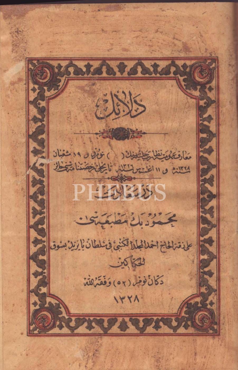 Hâfızu´l-Kur´ân Seyyid Osman hattıyla, kadife cildinde DELÂİLÜ´L-HAYRÂT, 187 s., Mahmud Bey Matbaası, İstanbul 1328, 13x19 cm