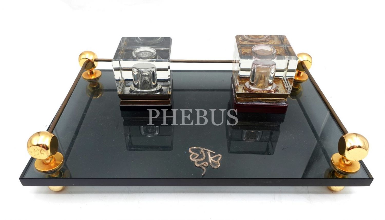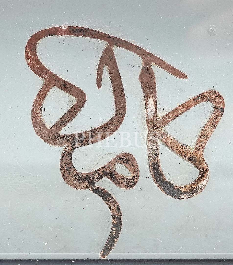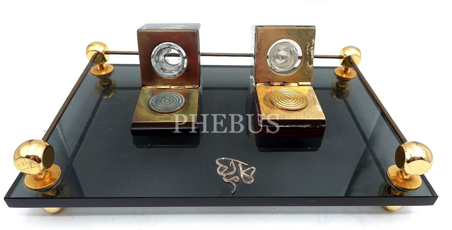 "Kâmil" ketebesinin yazılı olduğu cam zemin üzerinde 2 adet cam divit, zemin: 20x31 cm; divit: 6x7 cm