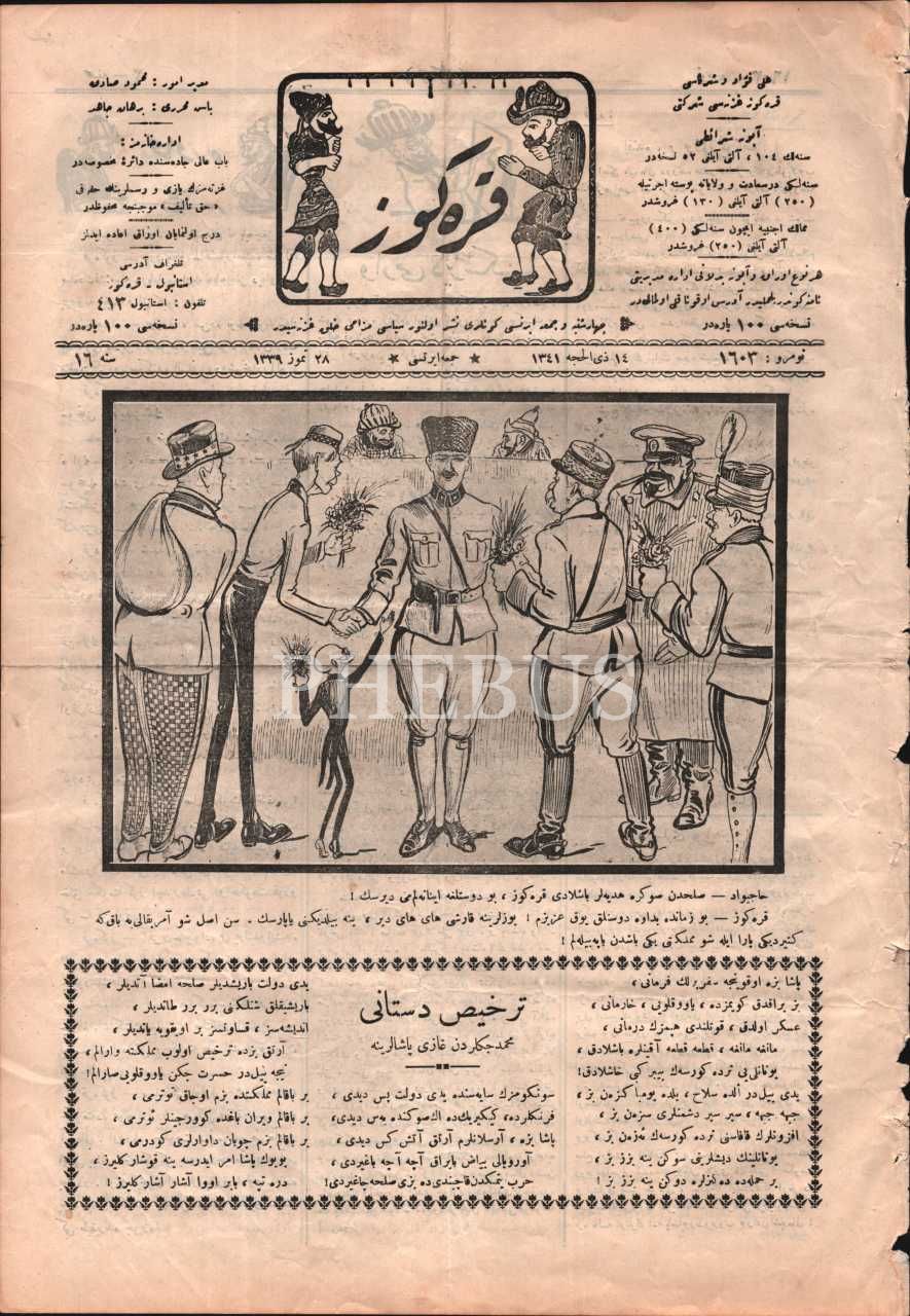 Siyasi mizahi halk gazetesi KARAGÖZ´ün 1603. sayısı, 28 Temmuz 1339, 28x40 cm