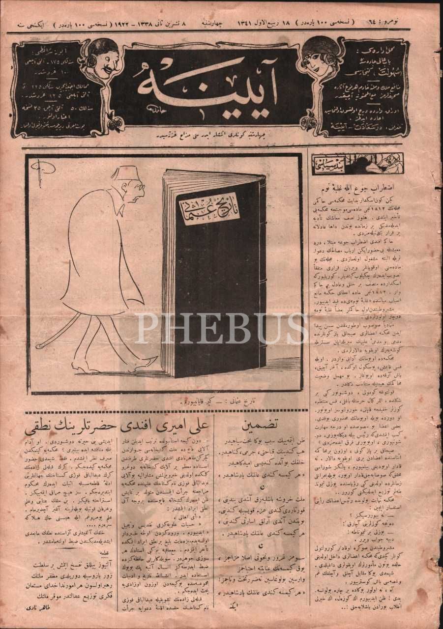 Milli mizah gazetesi AYİNE´nin Osmanlı defterinin kapanışına dair kapak görseliyle 64. sayısı, 8 Teşrinisani 1922, 28x39 cm