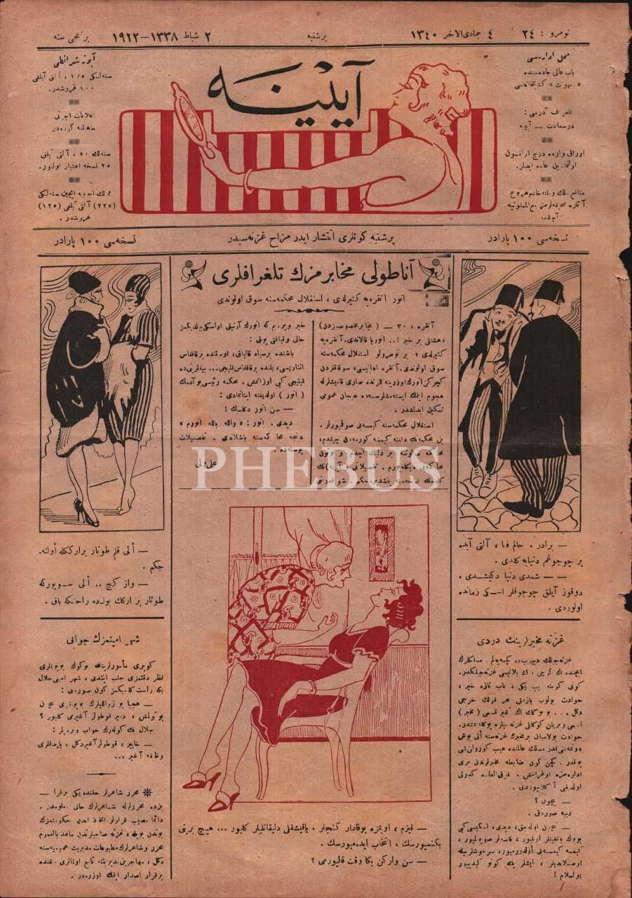 Mizah gazetesi AYİNE´nin 24. sayısı, 2 Şubat 1922, 28x39 cm