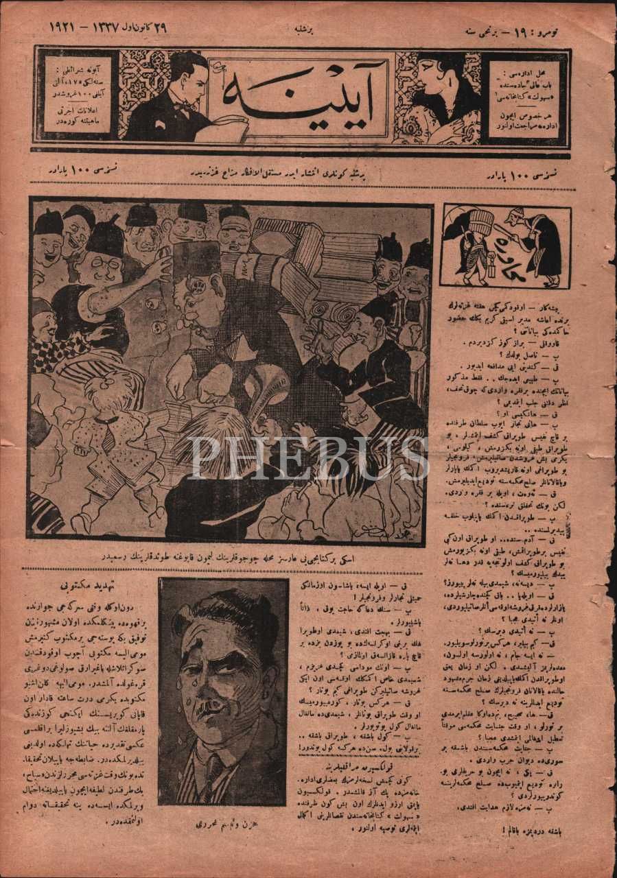 Mizah gazetesi AYİNE´nin 19. sayısı, 29 Kanunuevvel 1921, 28x39 cm