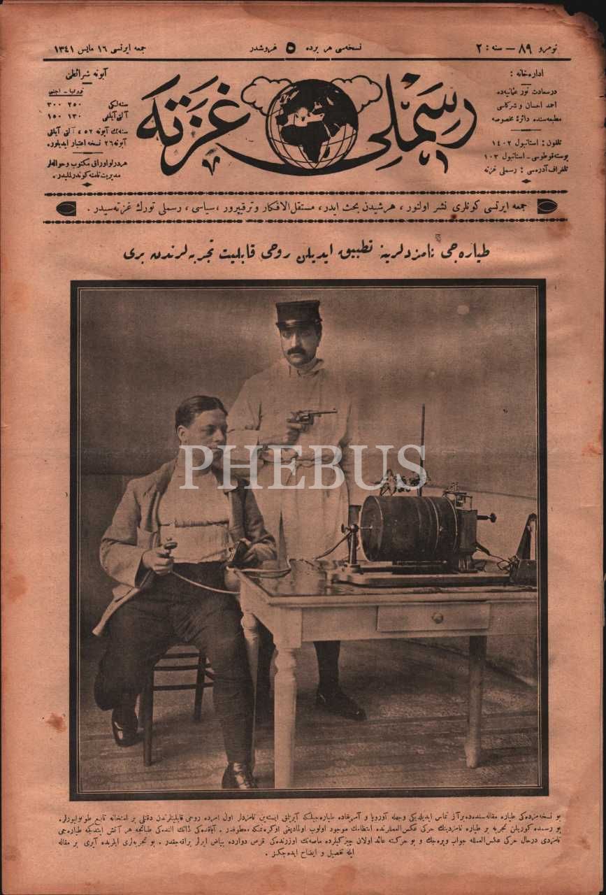 RESİMLİ GAZETE´nin tayyareci adaylarına uygulanan deneye dair kapak görseliyle 89. sayısı, 16 Mayıs 1341, 27x40 cm