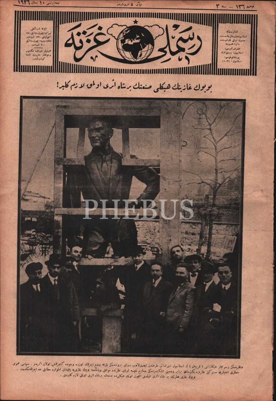 RESİMLİ GAZETE´nin Atatürk heykelli kapak görseliyle 136. sayısı, 10 Nisan 1926, 27x39 cm