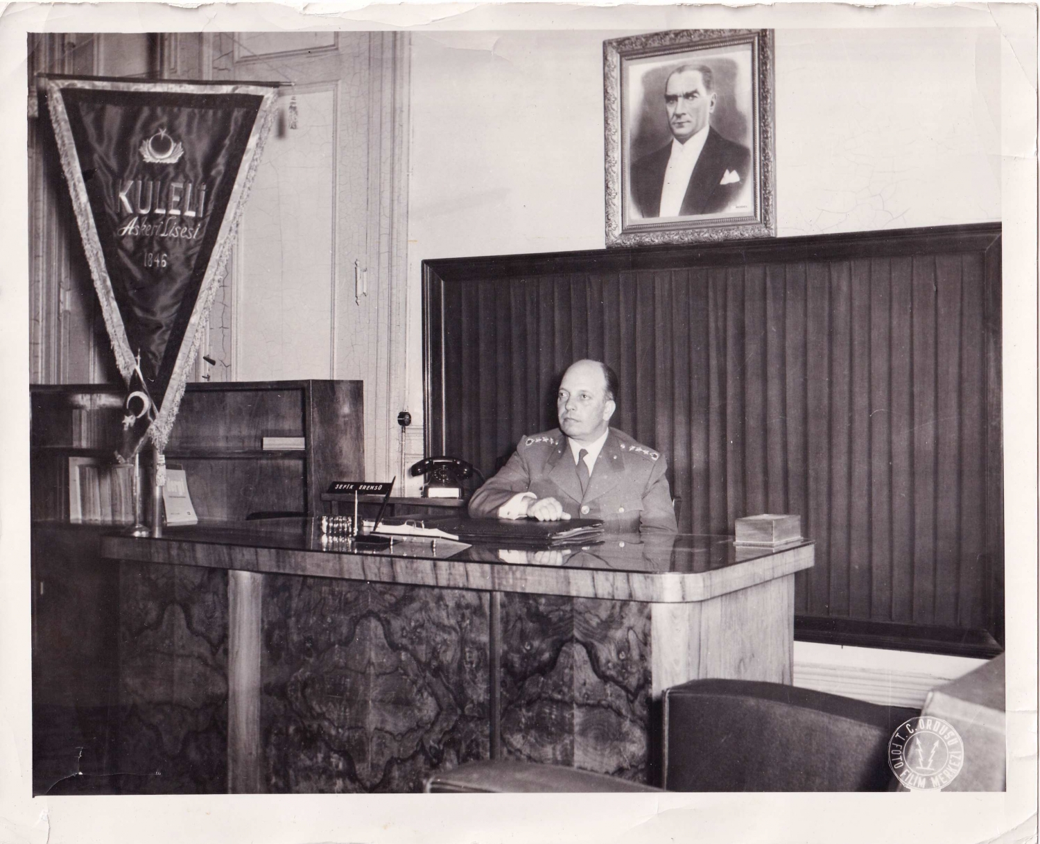 Kuleli Askeri Lisesi, Atatürk fotoğrafının altında Türk komtanı, 25x20 cm