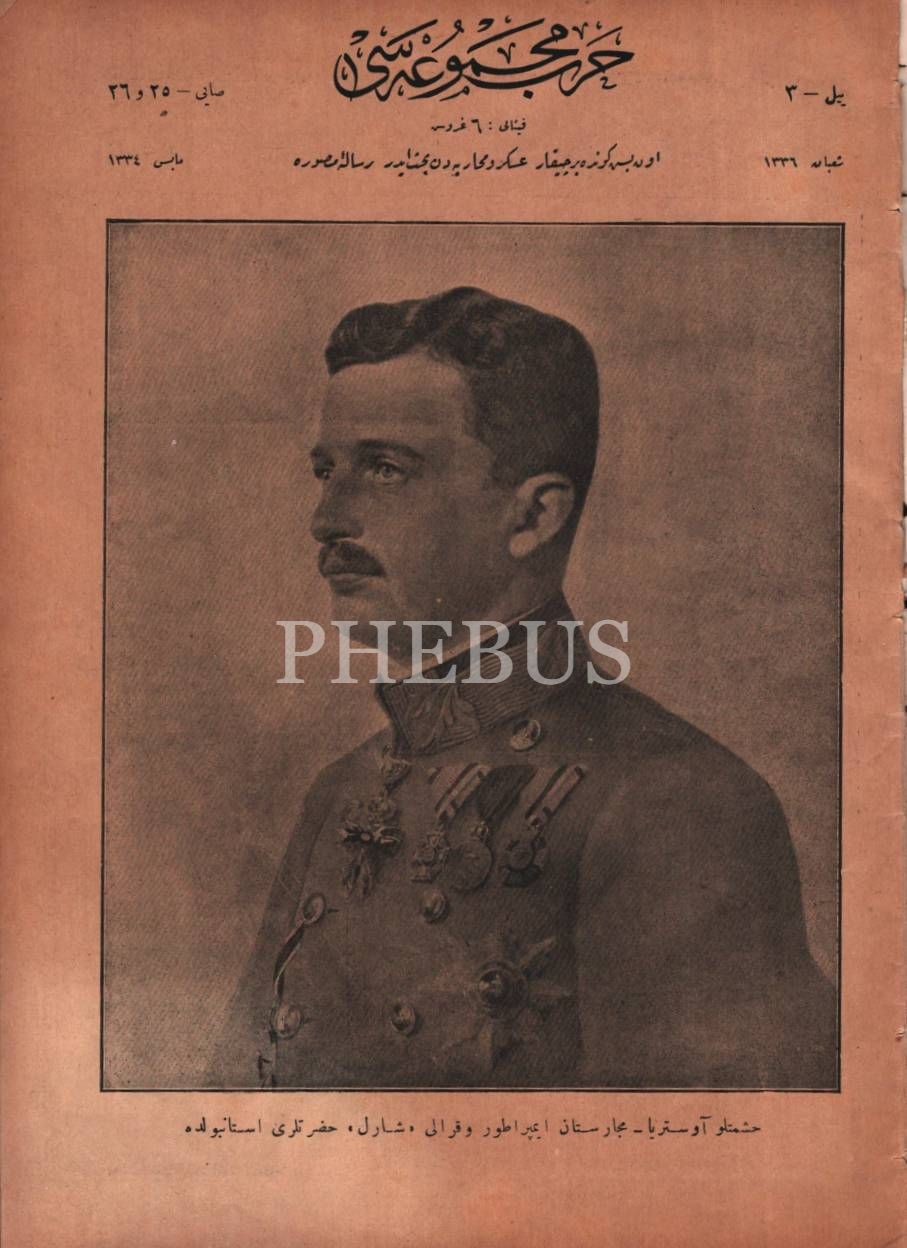 HARB MECMUASI´nın Avusturya-Macaristan İmparatoru Charles´a ait iç kapak görseliyle 25 ve 26. sayısı, Mayıs 1334, 24x34 cm