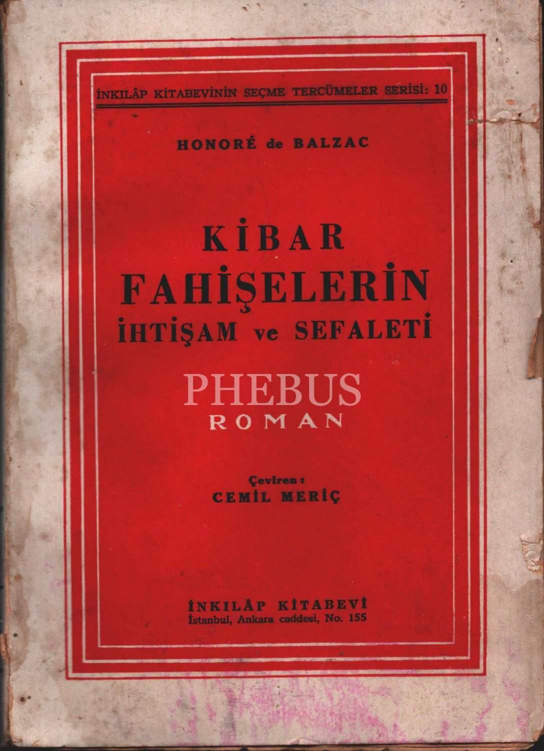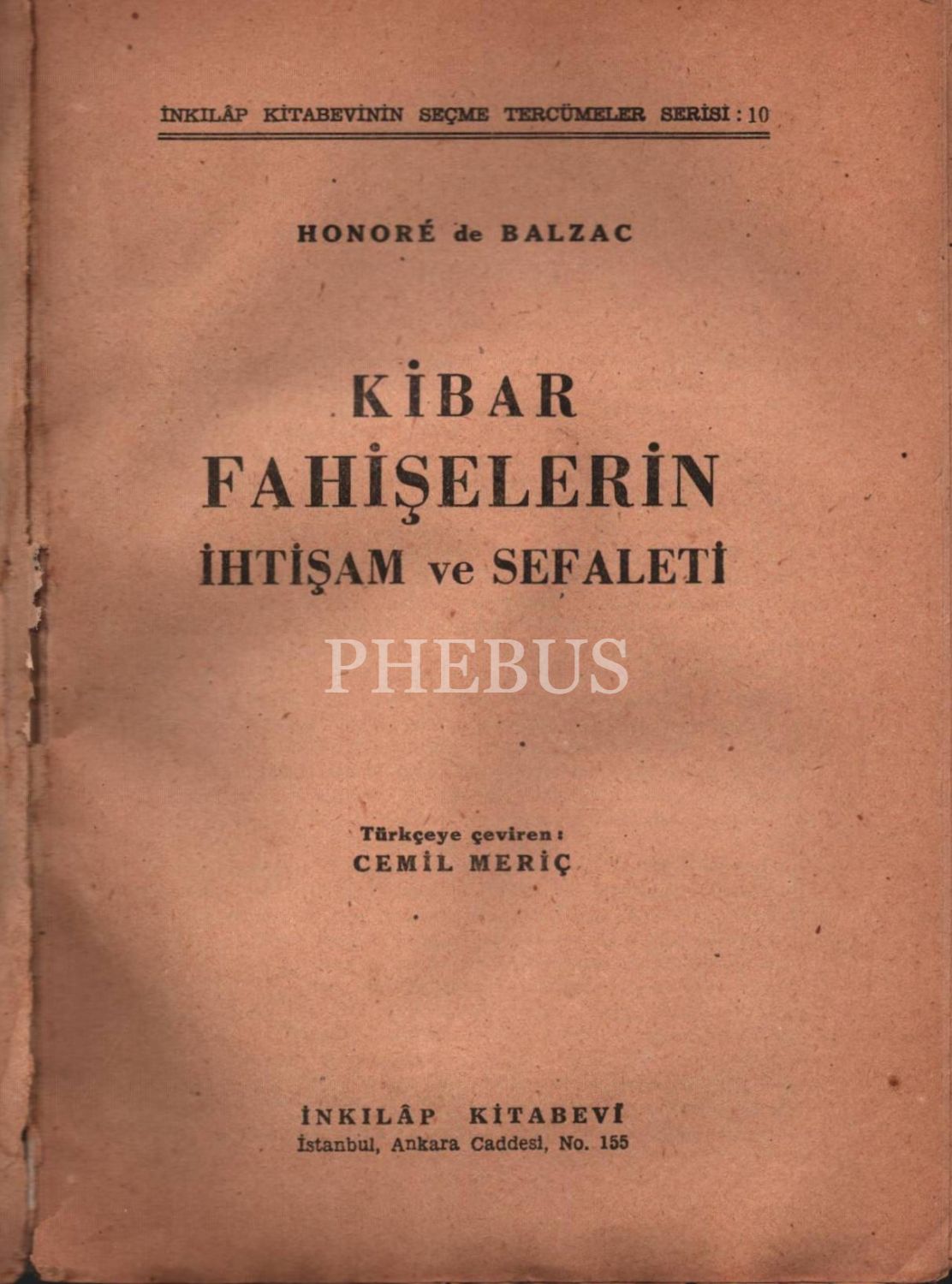KİBAR FAHİŞELERİN İHTİŞAM VE SEFALETİ, Honore de Balzac, çeviren: Cemil Meriç, İnkılâp Kitabevi, İstanbul - 1946, 471 sayfa, 15x21 cm