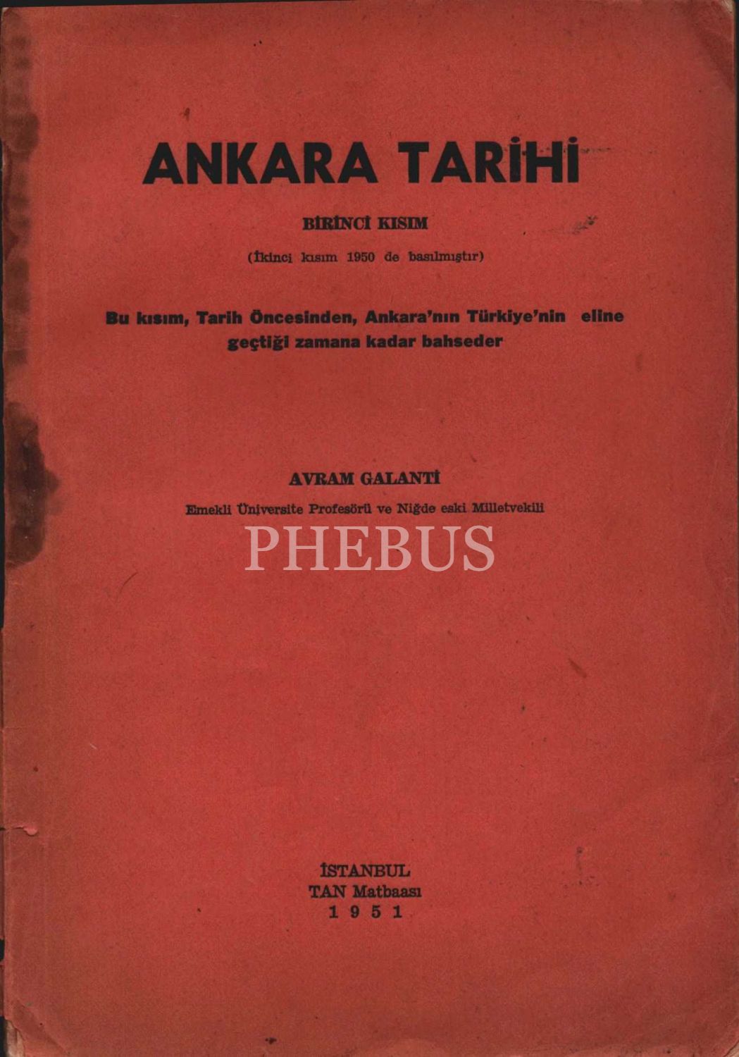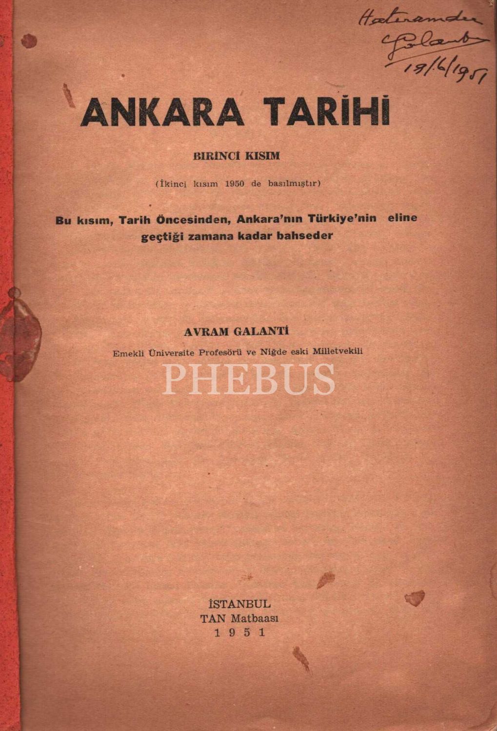Avram Galanti´den imzalı ANKARA TARİHİ (Birinci Kısım), Tan Matbaası, İstanbul - 1951, 71 sayfa, 17x24 cm