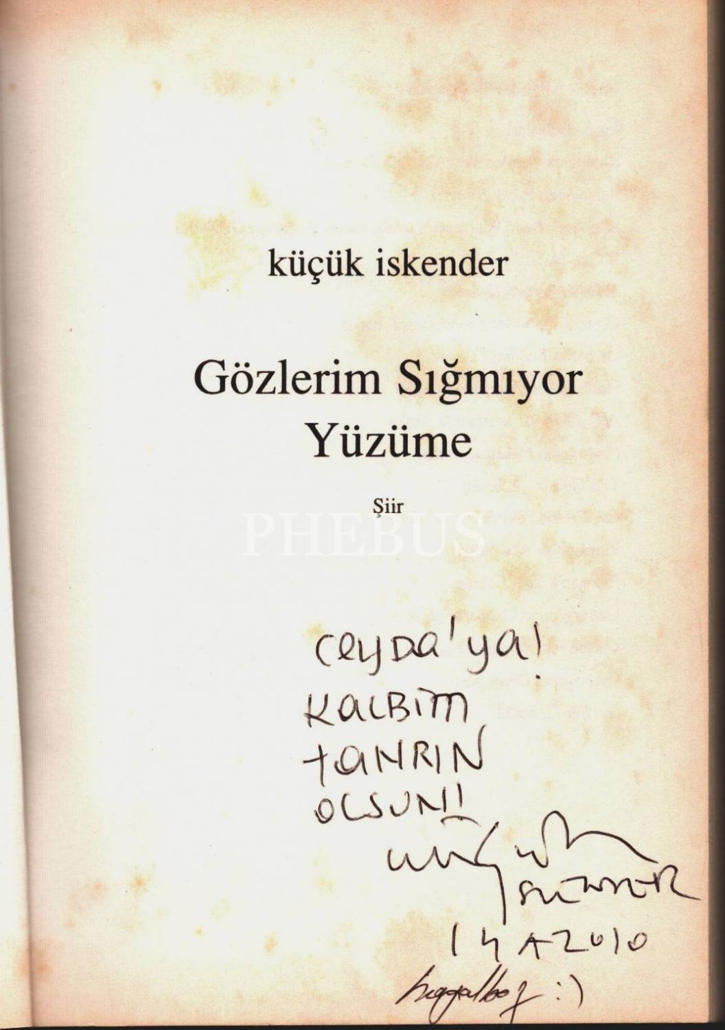 Küçük İskender´den ithaflı ve imzalı GÖZLERİM SIĞMIYOR YÜZÜME (Şiir), Sel Yayıncılık, Ekim 2010, 127 sayfa, 14x20 cm