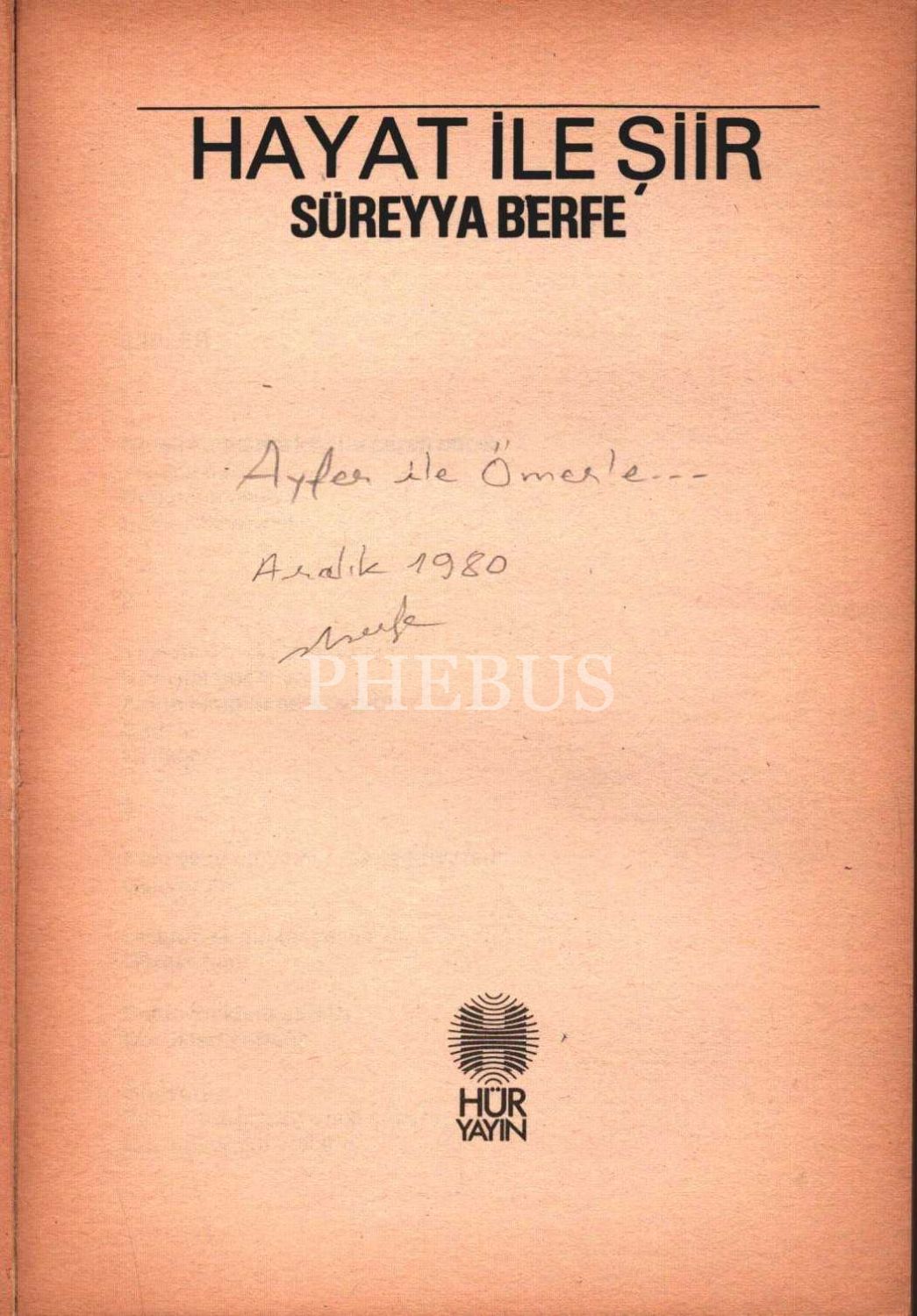 Süreyya Berfe´den ithaflı ve imzalı HAYAT İLE ŞİİR, Hür-Yayın, Nisan 1980, 144 sayfa, 13x19 cm