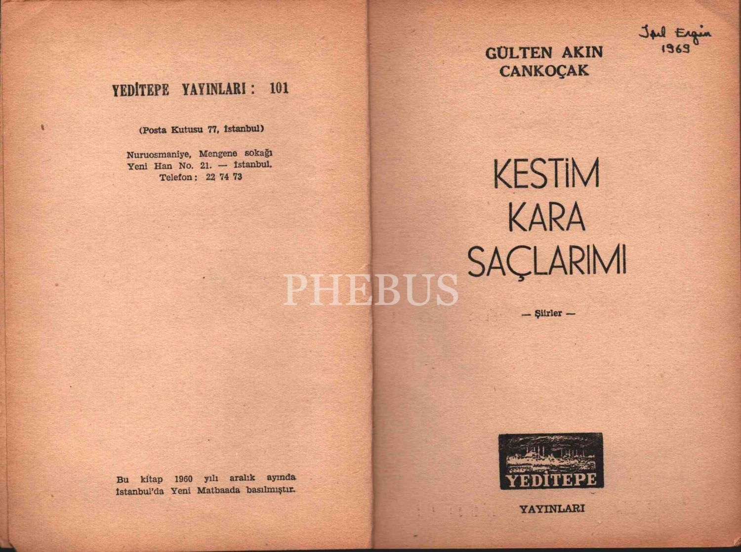 KESTİM KARA SAÇLARIMI (Şiirler), Gülten Akın Cankoçak, Yeditepe Yayınları, 1960, 46 sayfa, 14x20 cm