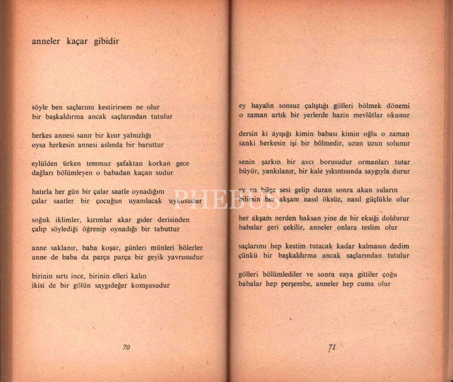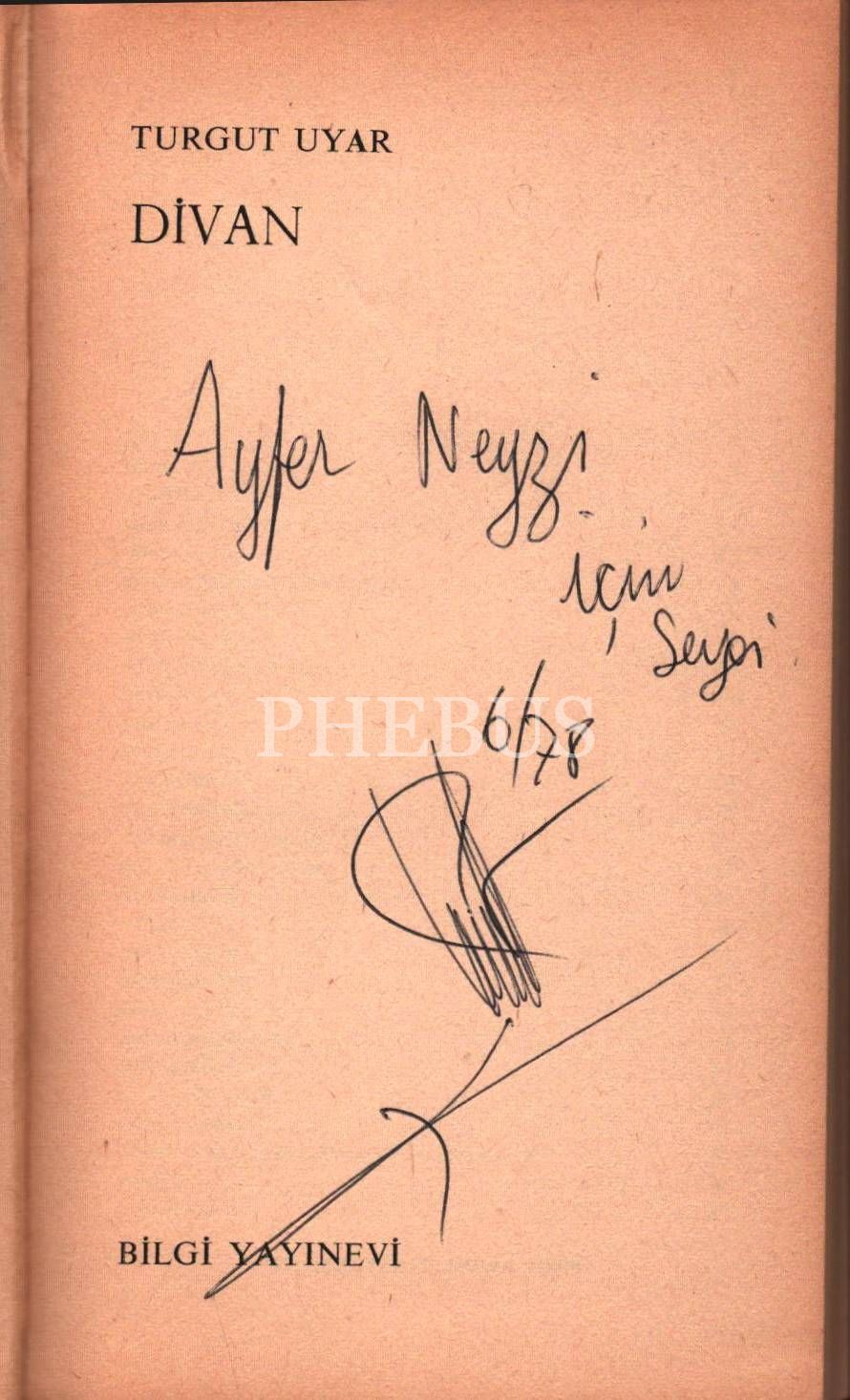 İthaf, "Ayfer Neyzi için sevgi. 6/78 Turgut Uyar" şeklindedir.