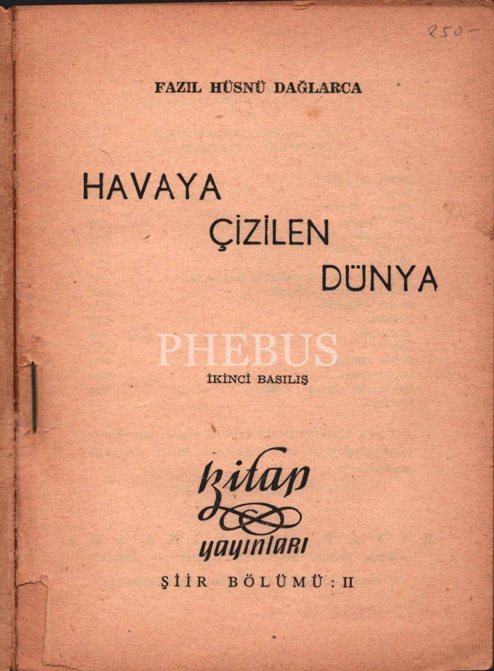 Fazıl Hüsnü Dağlarca´dan Kubilay Köseoğlu'ya ithaflı ve imzalı HAVAYA ÇİZİLEN DÜNYA, Kitap Yayınları, 1960, 102 sayfa, 12x17 cm