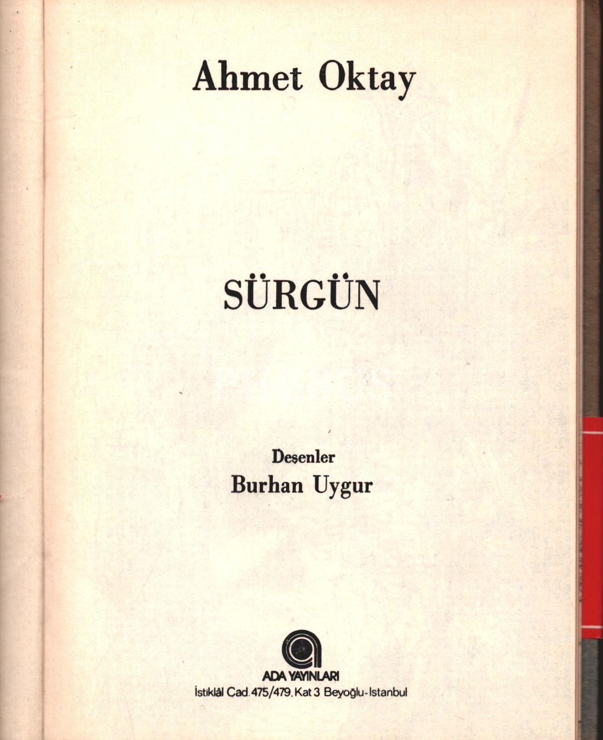 SÜRGÜN (Şiir), Ahmet Oktay, Ada Yayınları, Mart 1979, 44 sayfa, 14x19 cm