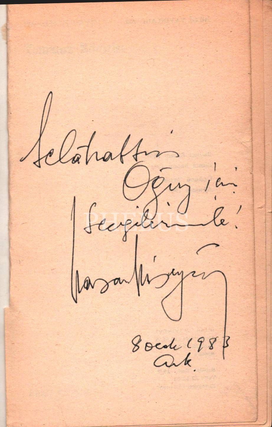 İthaf, "Selâhattin Oğuz için sevgilerimle! Hasan Hüseyin 8 Ocak 1988 Ank." şeklindedir.