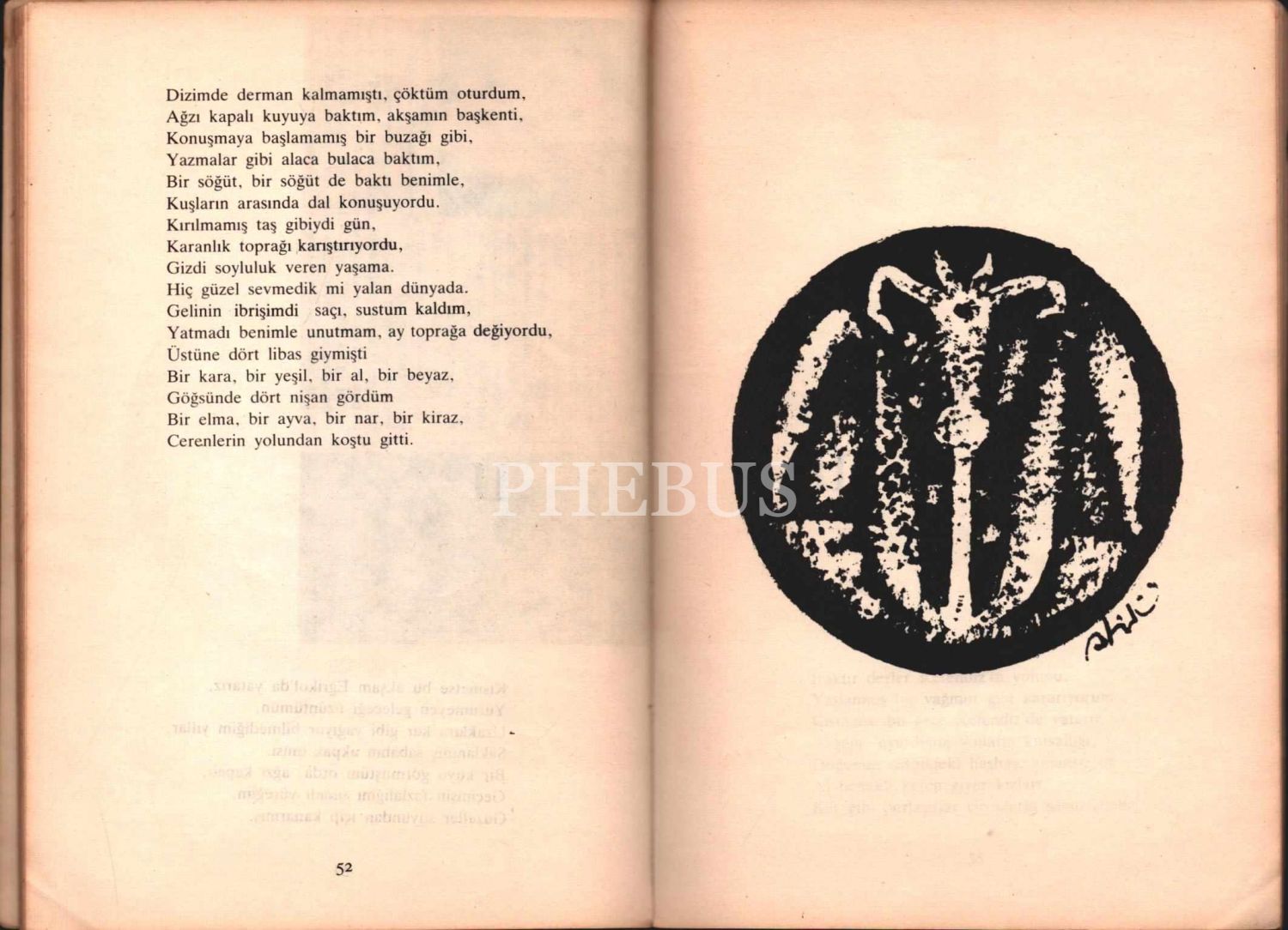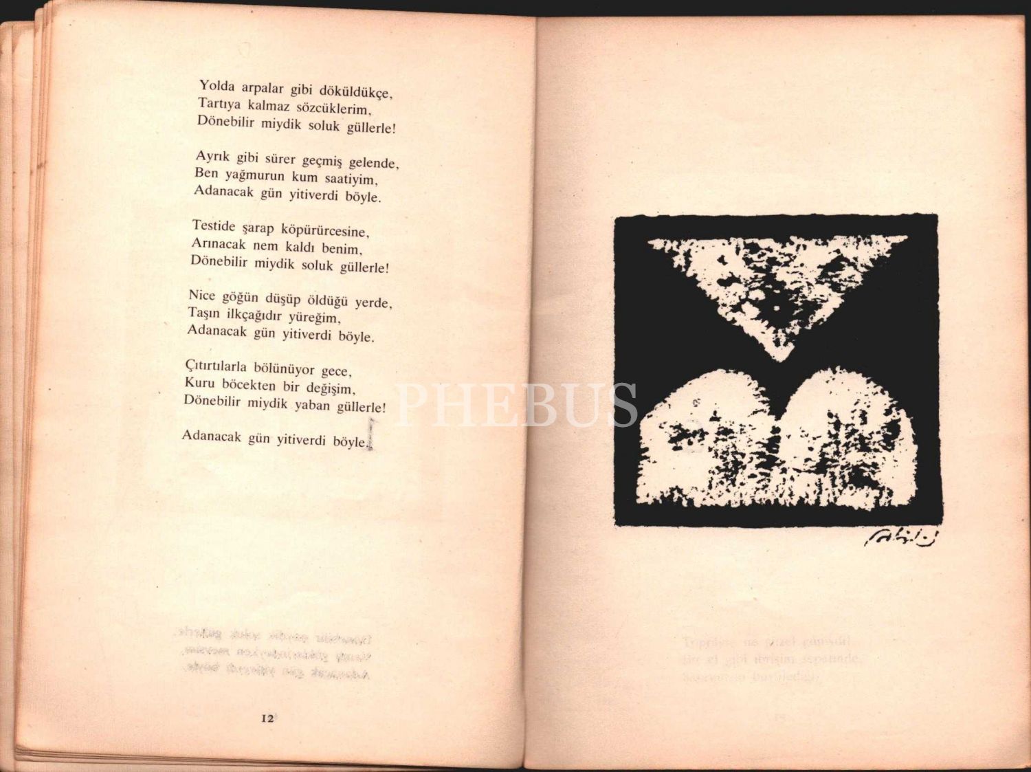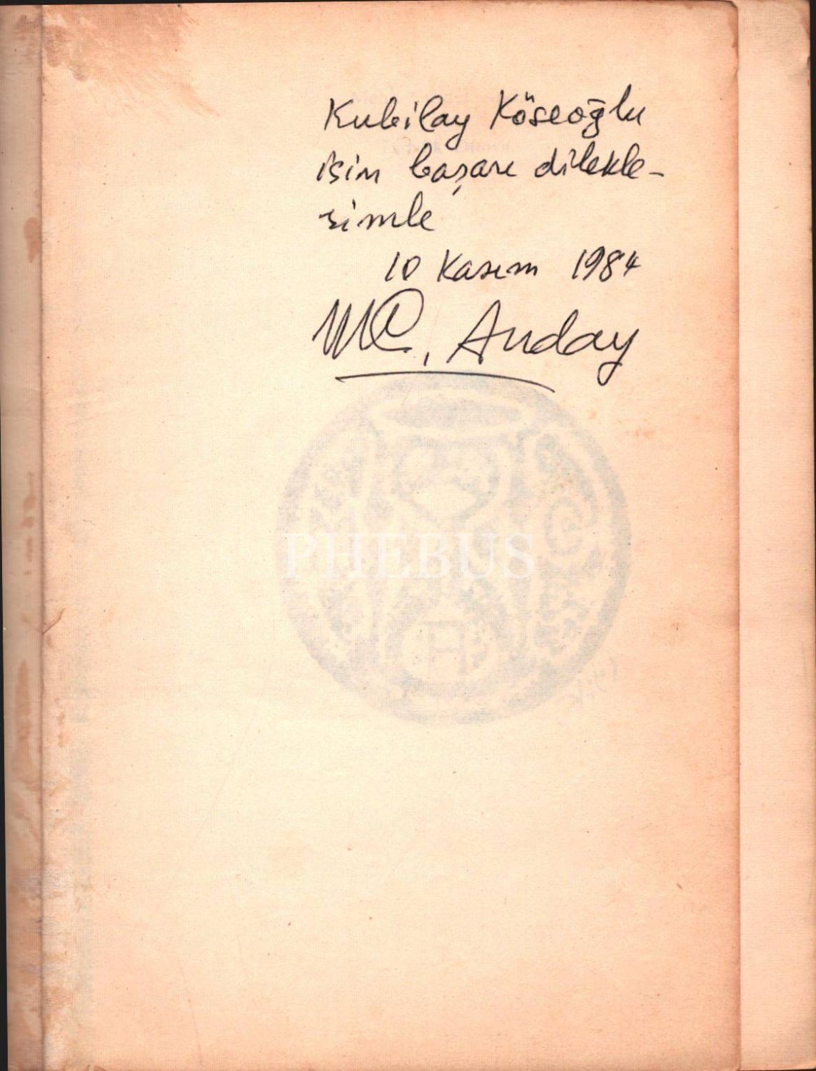 İthaf, "Kubilay Köseoğlu için başarı dileklerimle. 10 Kasım 1984 M. C. Anday" şeklindedir. Resimler: Abidin Dino