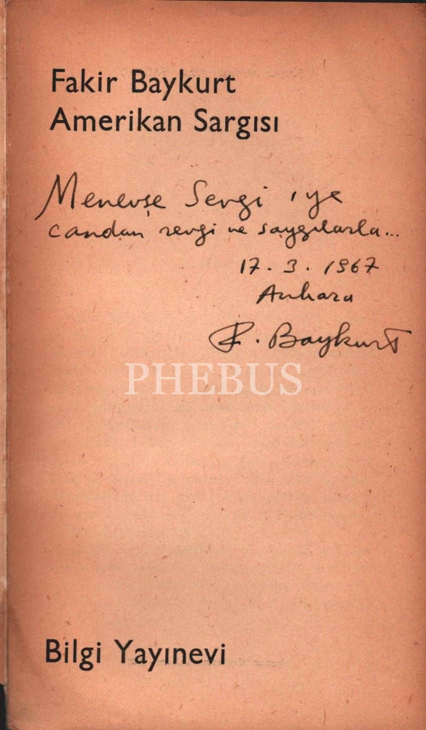 Fakir Baykurt´tan ithaflı ve imzalı AMERİKAN SARGISI, Bilgi Yayınevi, Şubat 1967, 449 sayfa, 11x19 cm