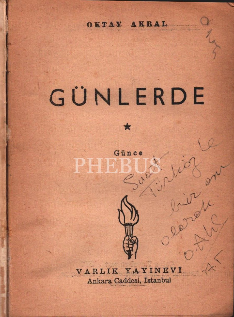 Oktay Akbal´dan ithaflı ve imzalı GÜNLERDE (Günce), Varlık Yayınları, Mart 1968, 208 sayfa, 12x17 cm