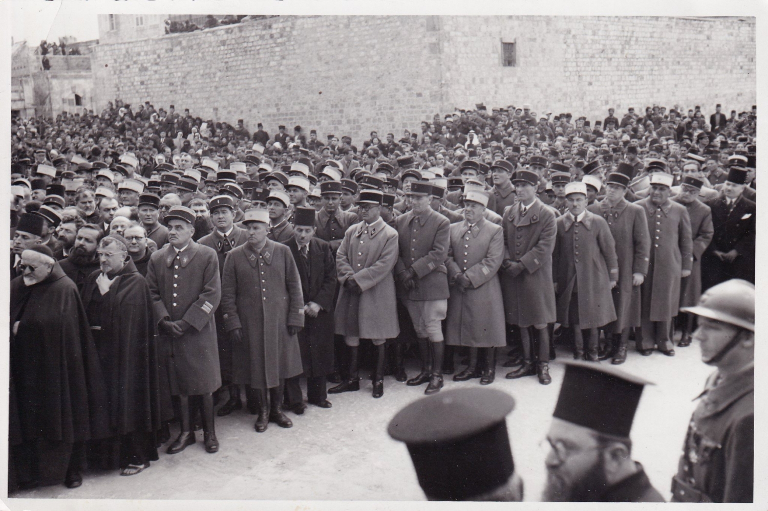 Fransız askerleri, din adamları ve fesli tipler törende, Fransız fotoğrafçı kaşeli ,17x11 cm