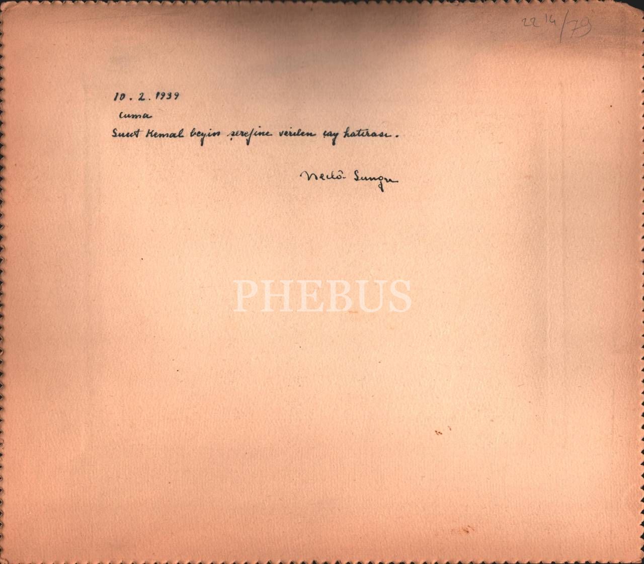 "10.2.1939 Cuma. Suut Kemal beyin şerefine verilen çay hatırası. ? Sungur"