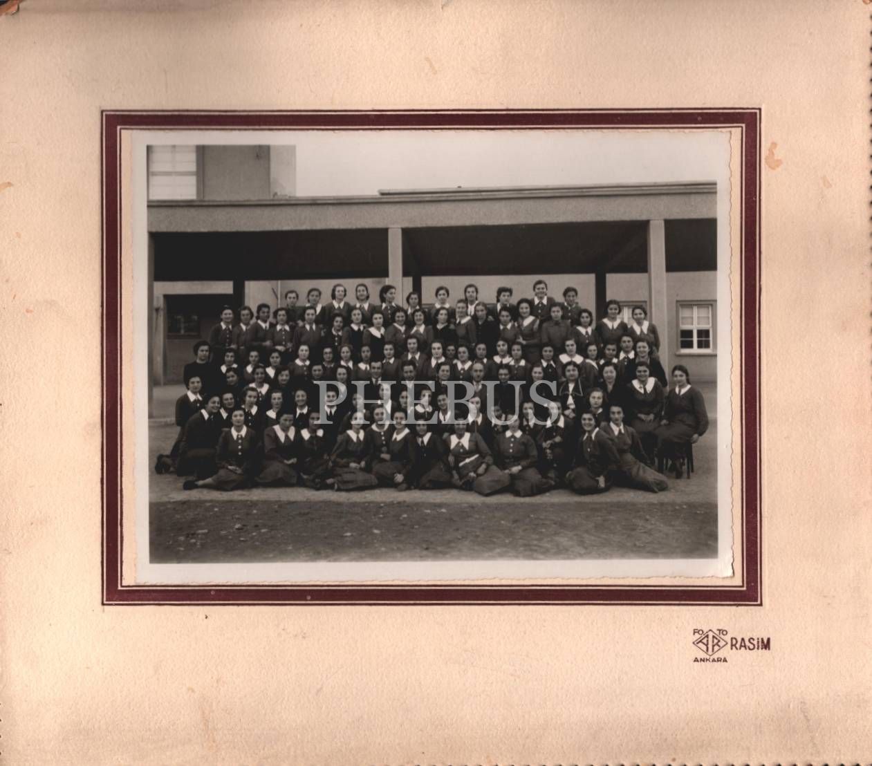 Suut Kemal Yetkin kendisinin şerefine çay partisi düzenlenen bir okulun öğretmen ve öğrencileriyle birlikte, "Foto Ar Rasim - Ankara damgalı" paspartusunda, 34x30 cm