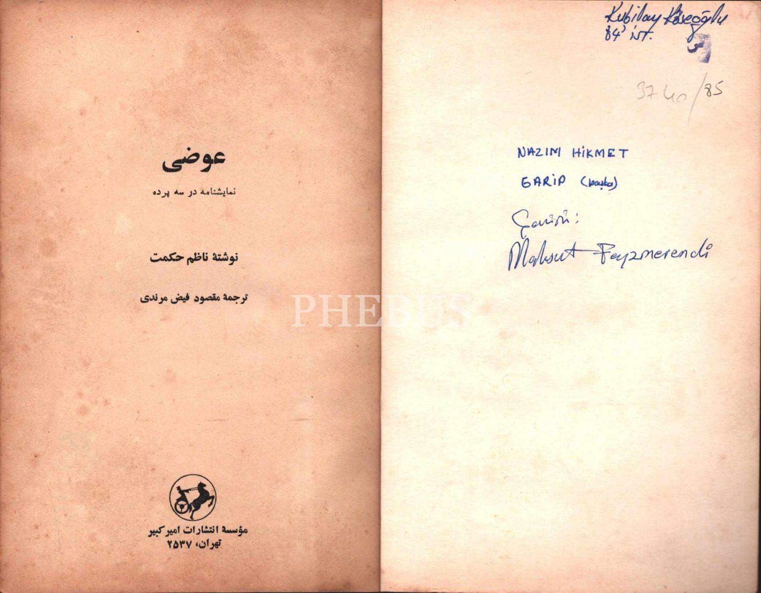 Farsça AVAZÎ/GARİP (Oyun), Nazım Hikmet, Farsçaya çeviren: Maksud Feyz Merendi, Müessese-i İntişarat-ı Emir Kebir, 123 sayfa, 14x21 cm