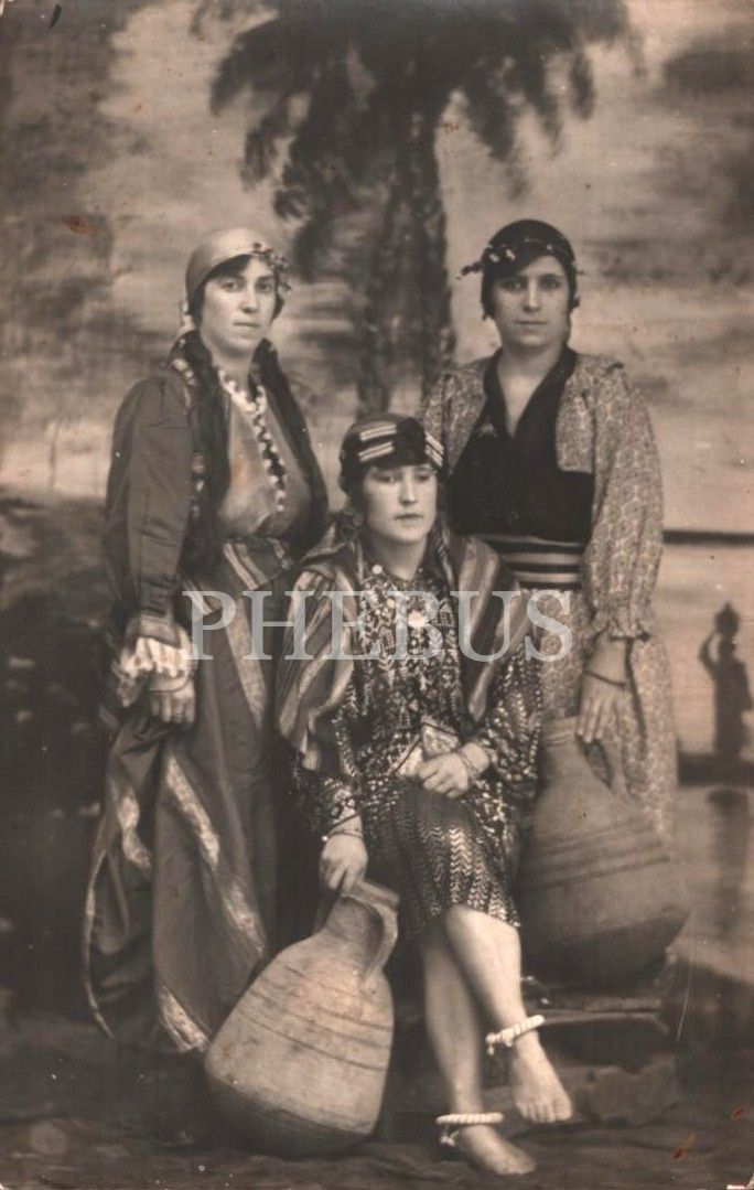 Yöresel kıyafetleri ve ellerinde testileriyle 3 güzelin stüdyo fotoğrafı, 9x14 cm