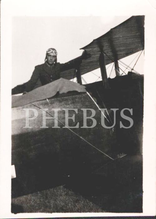 Çift kanatlı uçağıyla uçuş öncesinde poz veren pilot, 6x9 cm