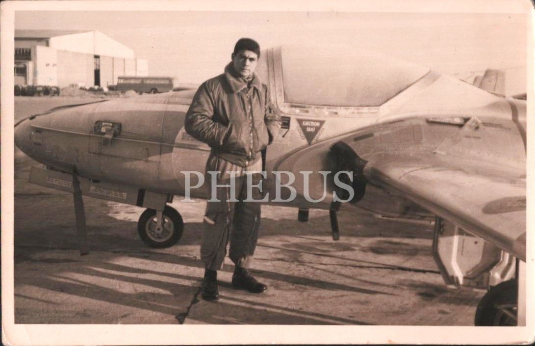Uçağı önünde poz veren bir jet pilotu, 9x14 cm