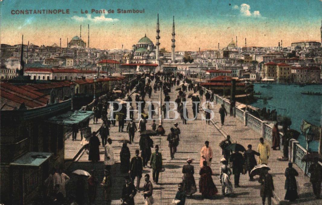 Galata Köprüsü üzerinde yürüyen insanlar, Constantinople