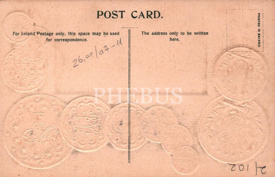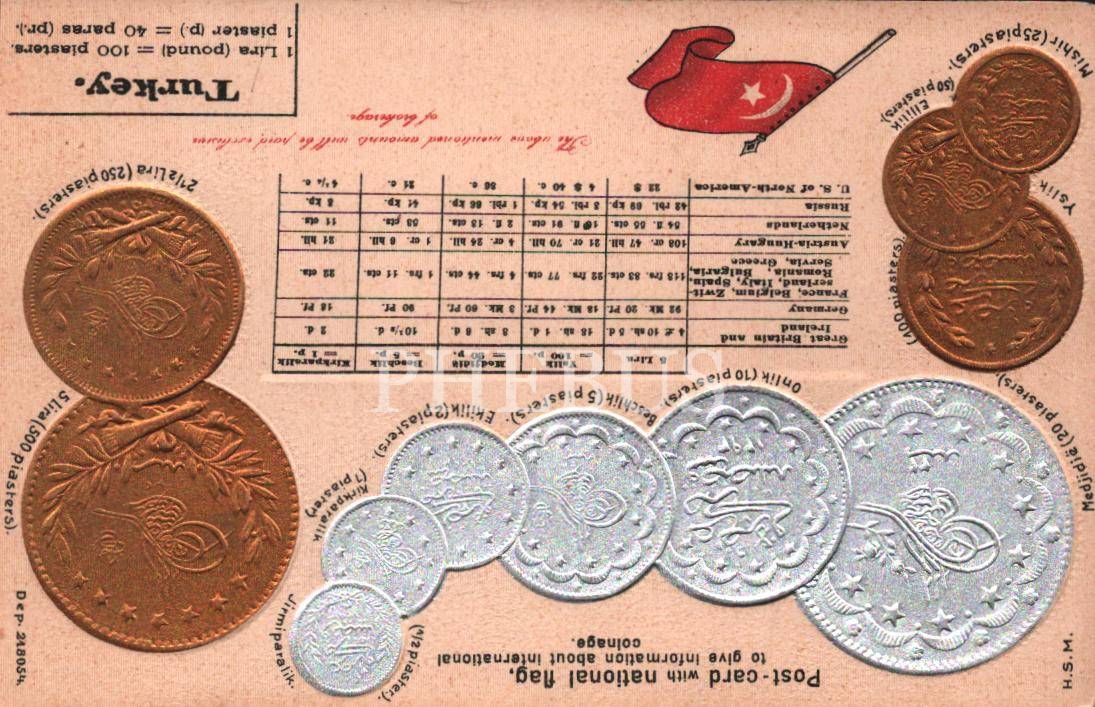 Gofre kartpostal: Osmanlı gümüş ve altın paraları ile diğer ülke paralarının karşılıkları