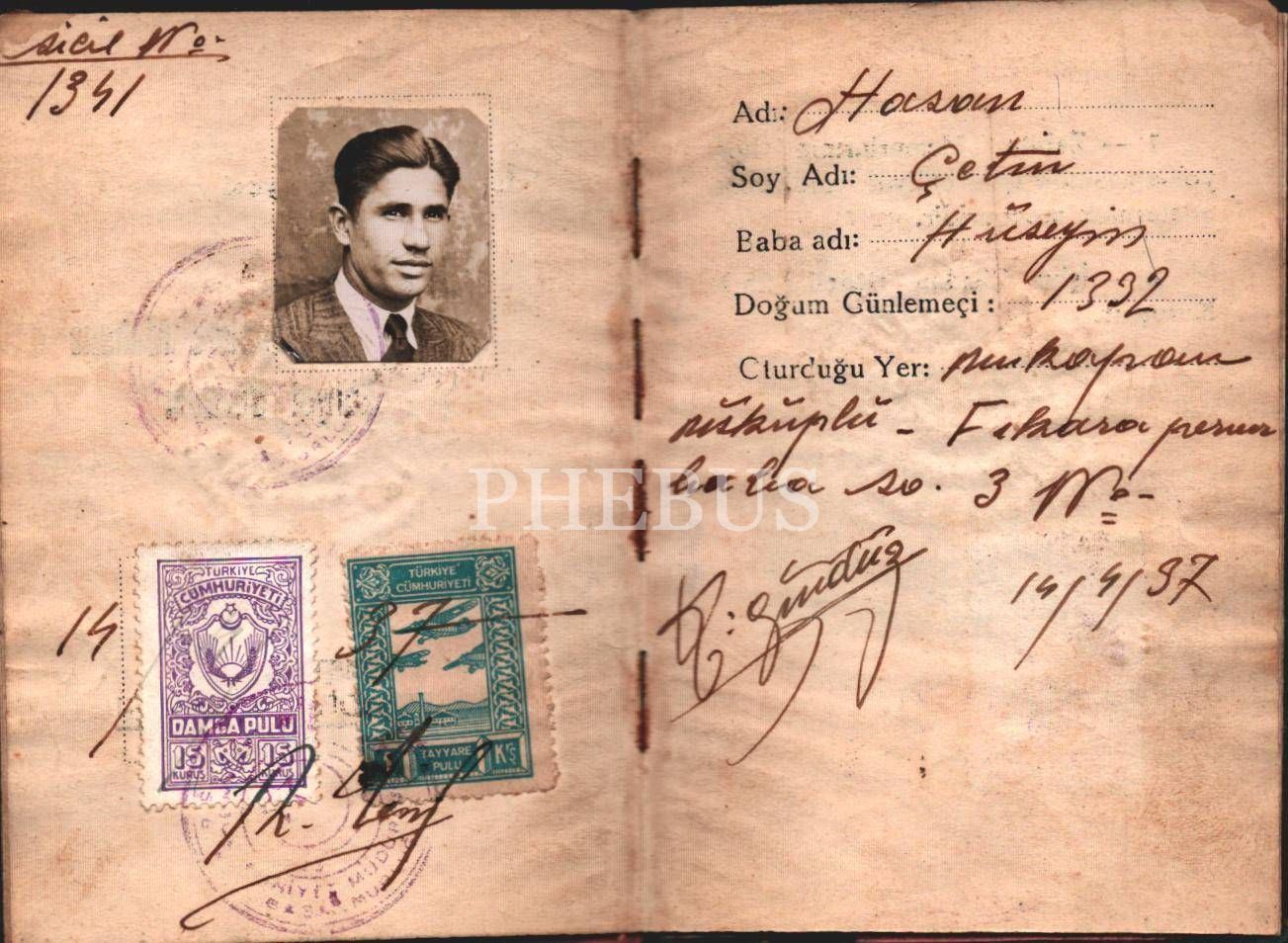 Fotoğraflı bisiklet ehliyet cüzdanı, İstanbul 1935, 8x12 cm