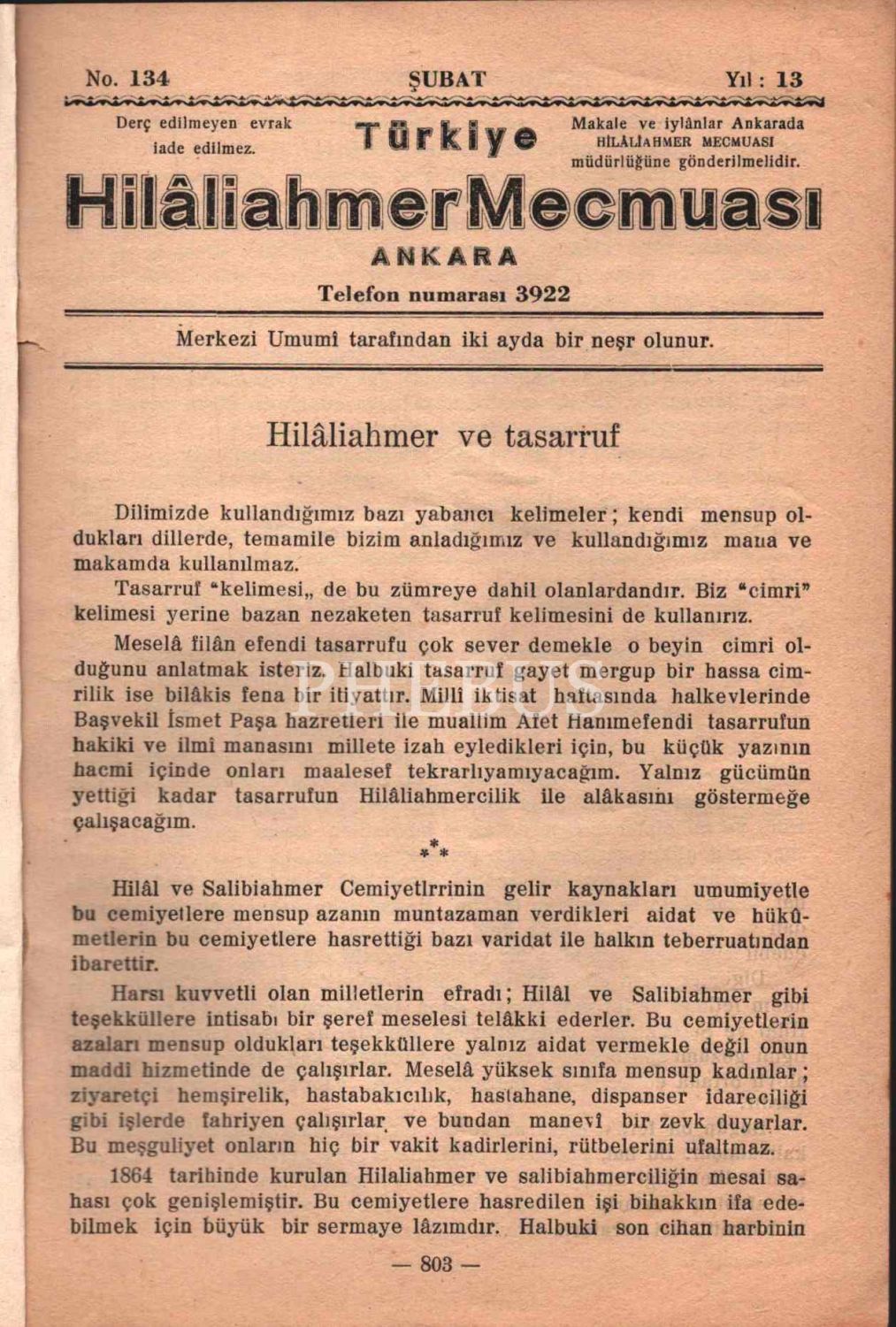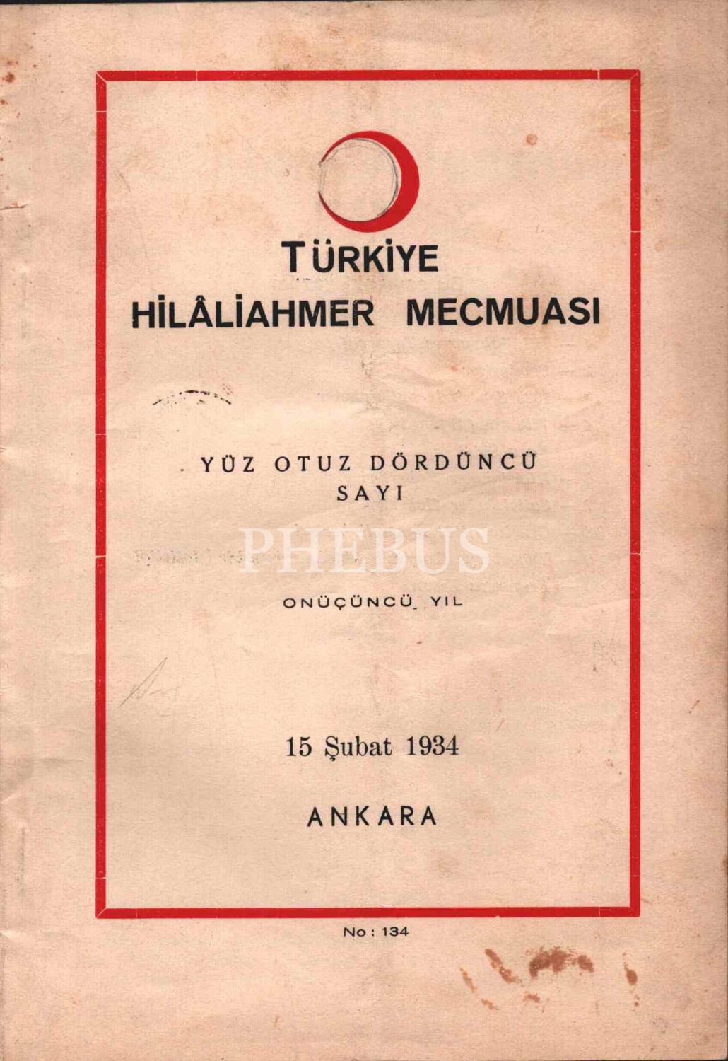 TÜRKİYE HİLÂLİAHMER MECMUASI´nın 34. sayısı, 15 Şubat 1934, 16x24 cm