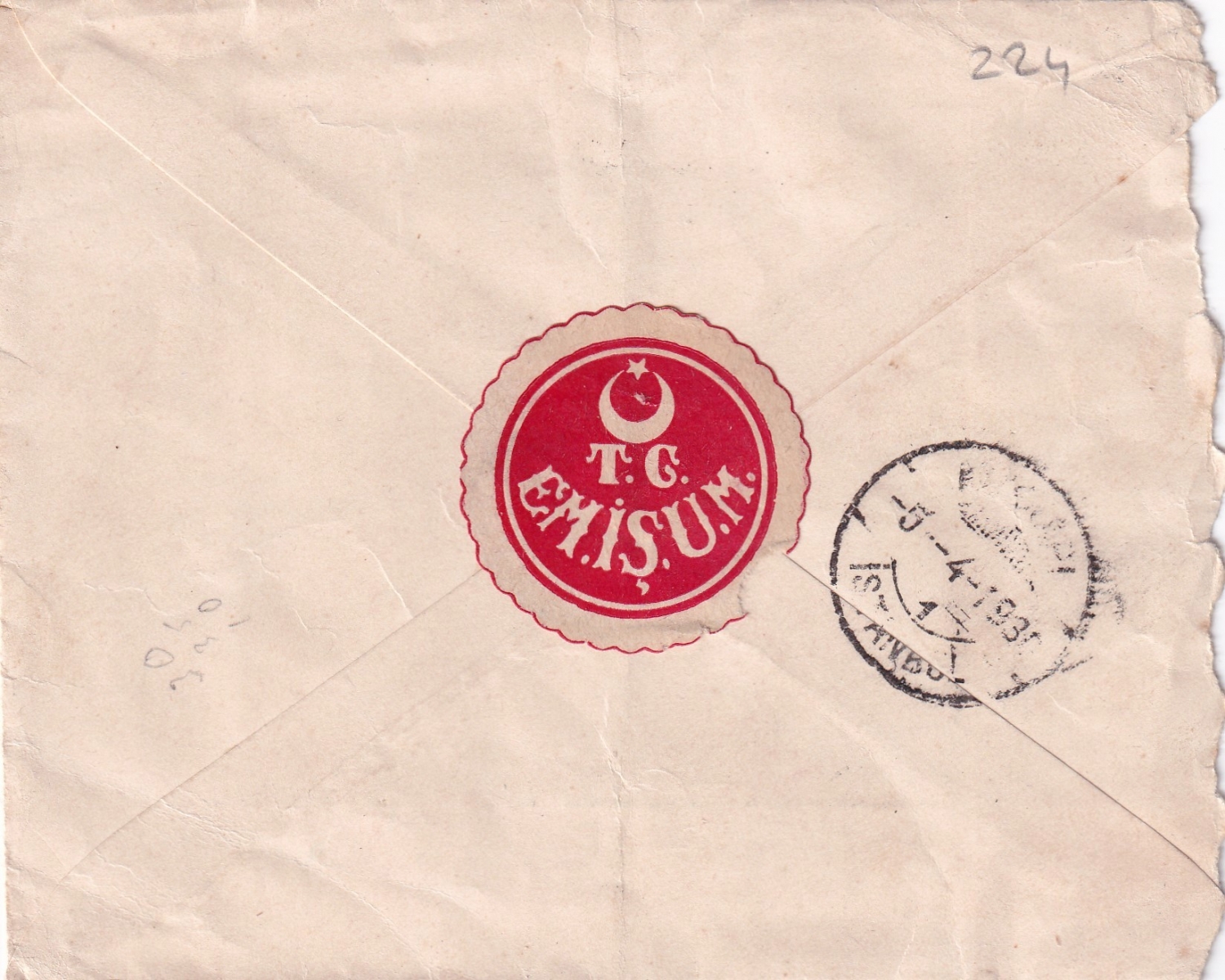 T.C - E.M.İ.Ş.U.M kapama vintetli postadan geçmiş zarf
