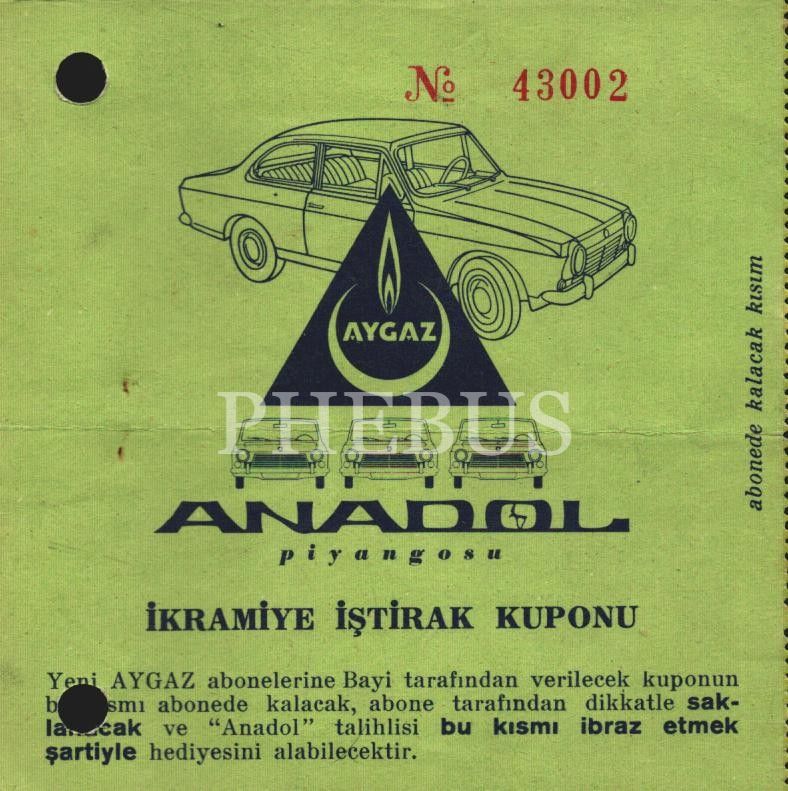 "Yeni Aygaz abonelerine Bayi tarafından verilecek kuponun bu kısmı abonede kalacak, abone tarafından dikkatle saklanacak ve "Anadol" talihlisi bu kımsı ibraz etmek şartiyle hediyesini alabilecektir."