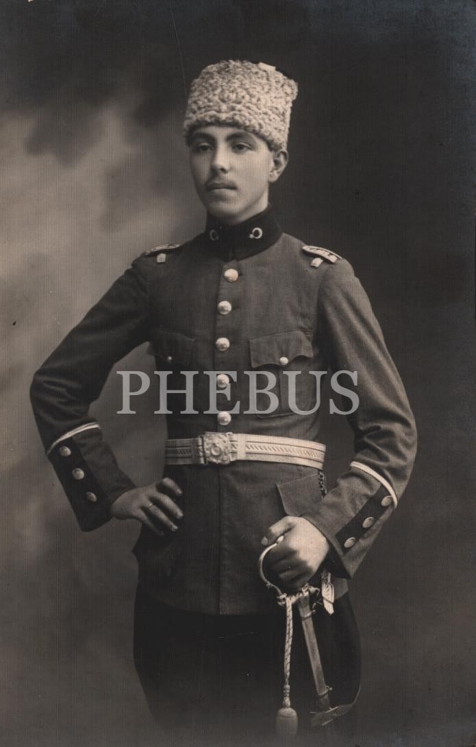 Mekteb-i Harbiye-i Şahane talebesine mahsus kılıcıyla poz veren genç subay, 9x14 cm
