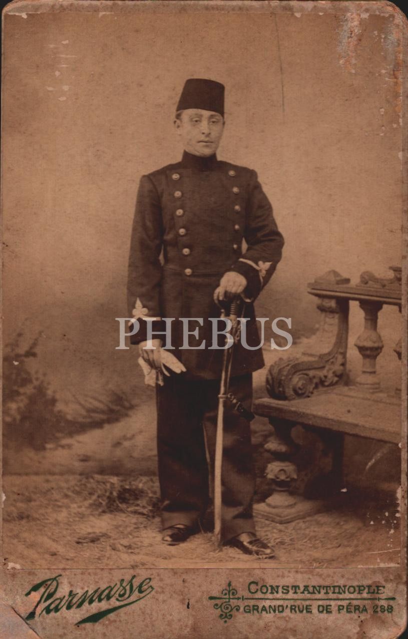 Osmanlı subayının stüdyo fotoğrafı, Foto Parnasse- Constantinople, 10x16 cm