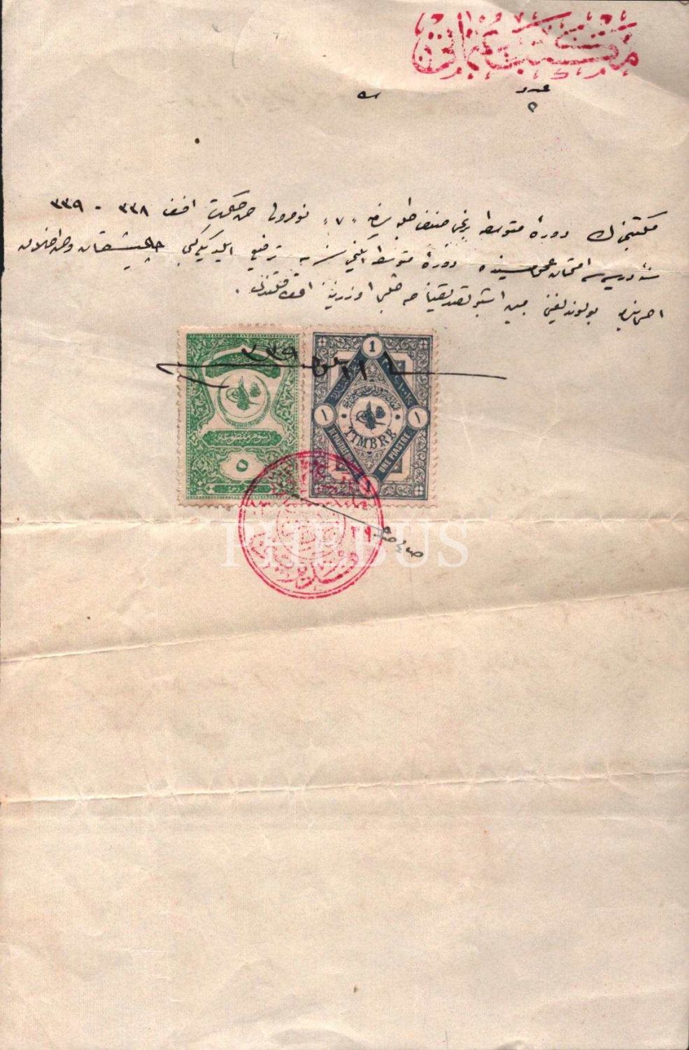 Mekteb-i Osmani antetli damgalı ve pullu tasdikname, 1339, 15x22 cm