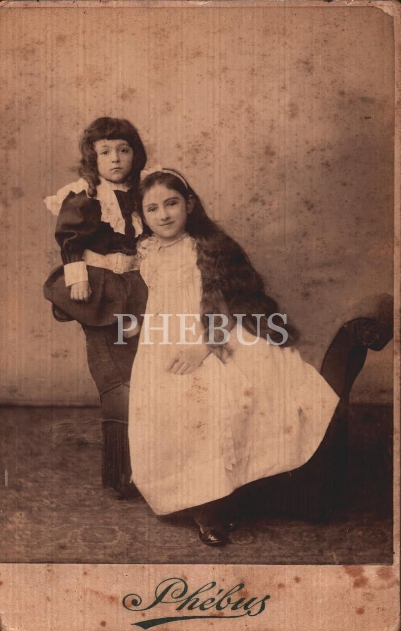 Mahzun bakışlı minik ve Rapunzel saçlı kız, Phebus Fotoğrafhanesi- Constantinople, 10x16 cm