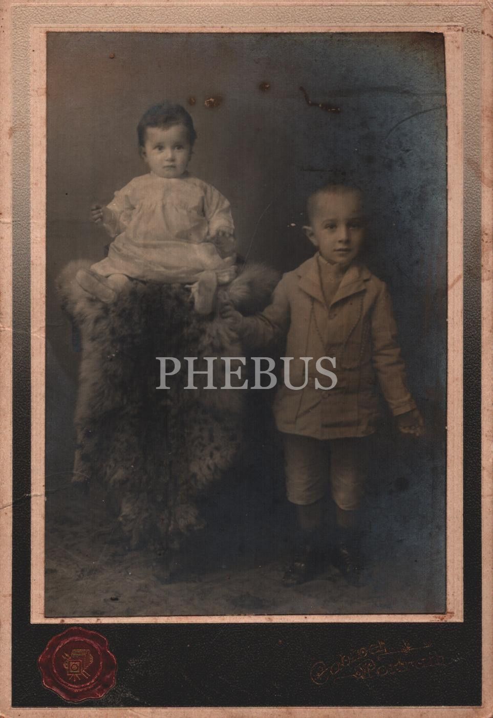 Post üzerine oturan bebek ve abisinin kabin fotoğrafı, 12x18 cm