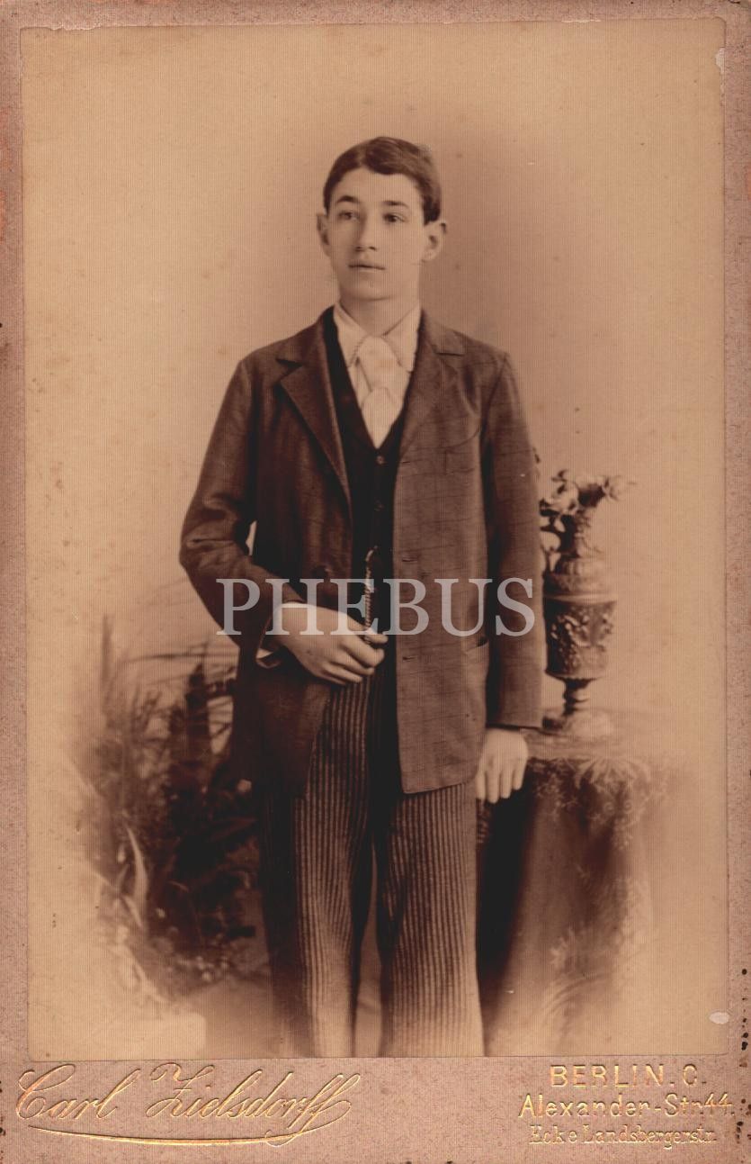 Çizgili pantolonu ve kareli ceketiyle poz veren genç beyefendi, Foto Carl Zielsdorff- Berlin, 11x16 cm