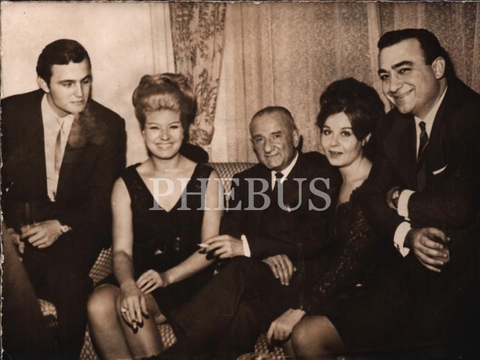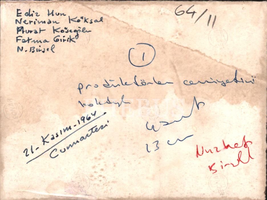 Ediz Hun, Neriman Köksal, Fatma Girik ve Nüzhet Birsel, Prodüktörler Cemiyeti´nin düzenlediği kokteylde, Acar Film´in kurucusu Murat Köseoğlu´nun çevresinde, 12x9 cm
