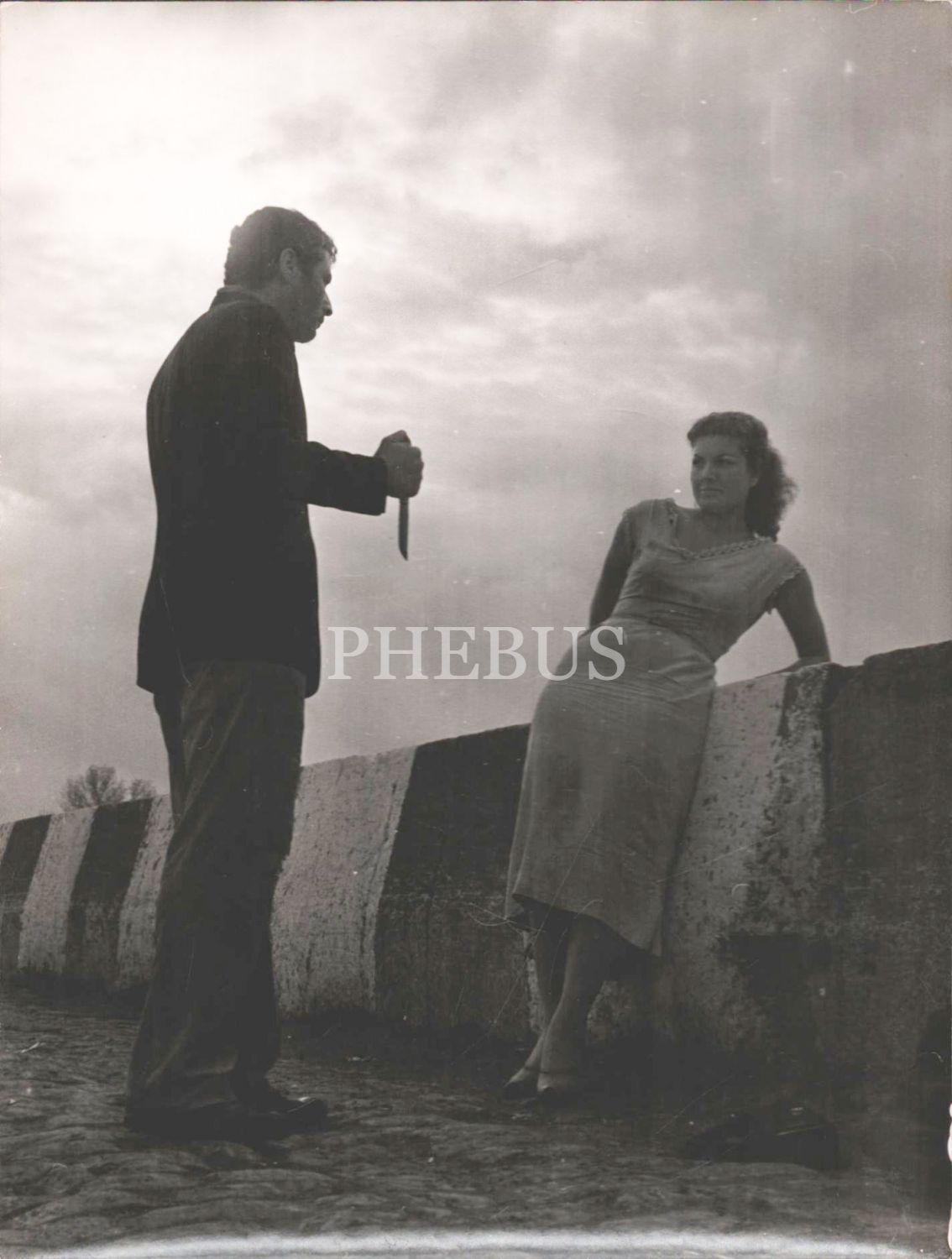 Nevin Aypar, Mahir Özerdem, Kenan Pars ve Neriman Köksal´ın başrollerini paylaştığı "Ecel Köprüsü" (1954) filminden bir kare, 18x24 cm