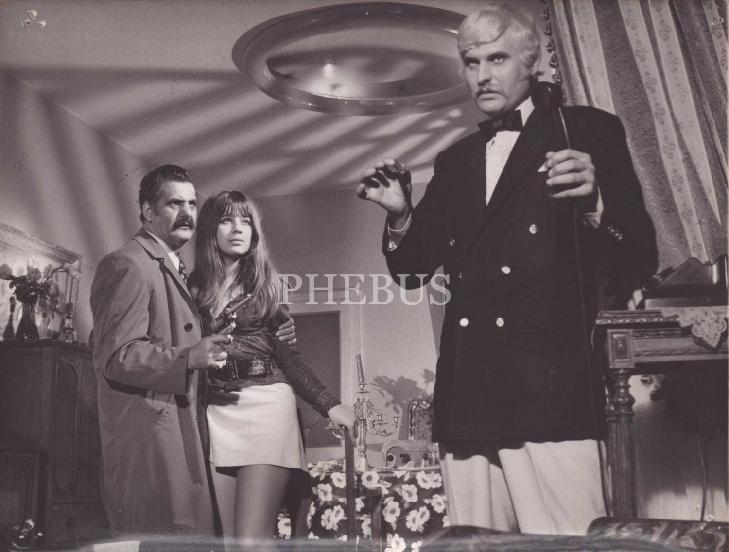 Demir Karahan, Ülkü Özen ve Erol Taş´ın başrollerini paylaştığı "Akrep Tuzağı" (1970) filminden bir kare, "M. Işık Toraman - Metin Film / Akrep Tuzağı" damgalı, 24x18 cm
