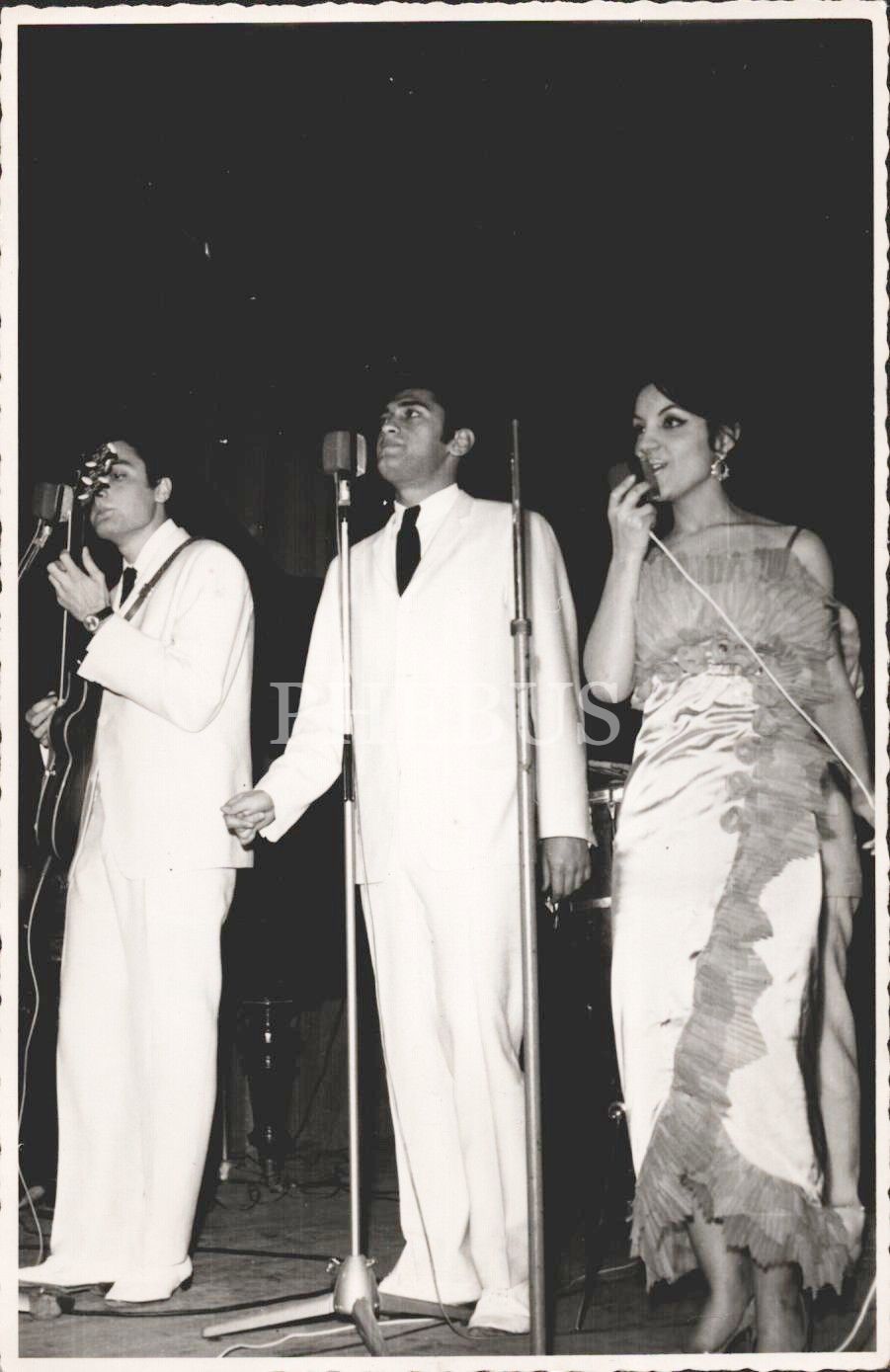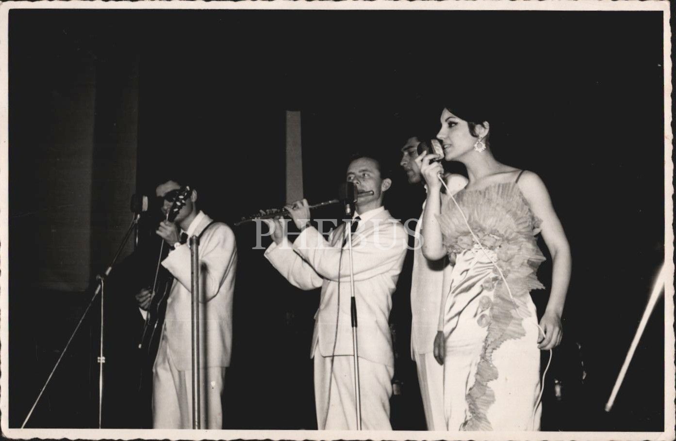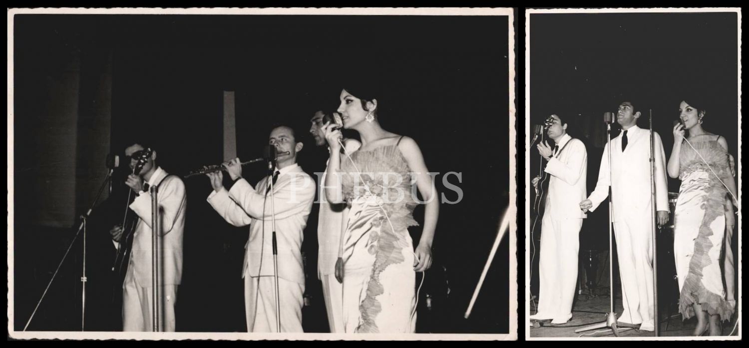 Ayla Dikmen, mensubu olduğu Şerif Yüzbaşıoğlu Orkestrası ile sahnede, 18x12 cm boyutunda iki adet fotoğraf
