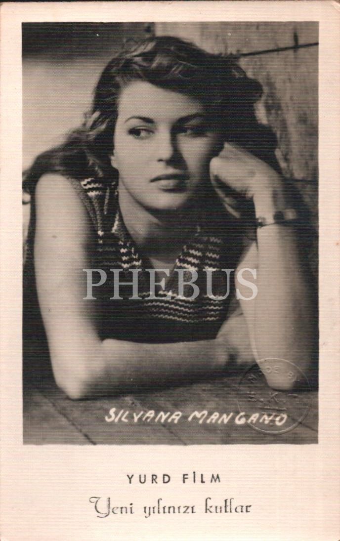 "Yurd Film"in 1950´li yıllardan 1970´li yıllara dek fırtınalar estiren İtalyan oyuncu ve manken Silvana Mangano´nun fotoğrafından oluşturduğu yeni yıl tebrik kartı, 9x14 cm